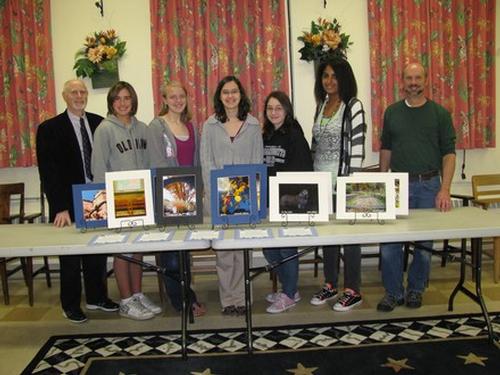 Members of Mitch Grosky's photo class with their photos at the Athol Public Library.
