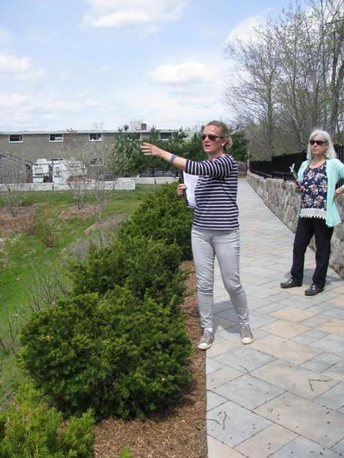 Katie explaining the detention pond at the How Does Your Garden Grow program at the library.