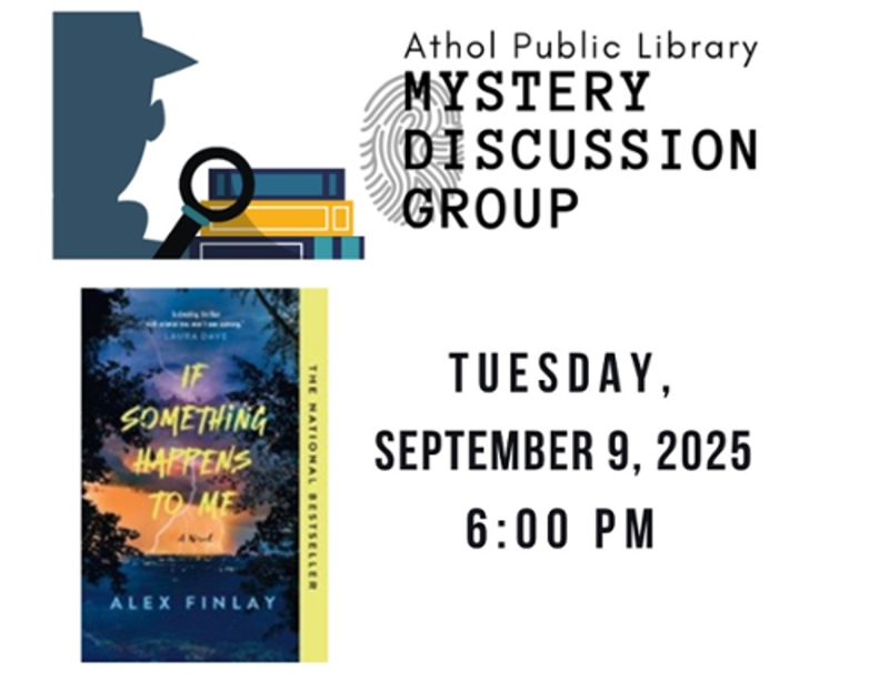 We will be discussing If Something Happens to Me by Alex Finlay on Tuesday, September 9 at 6:00 pm.