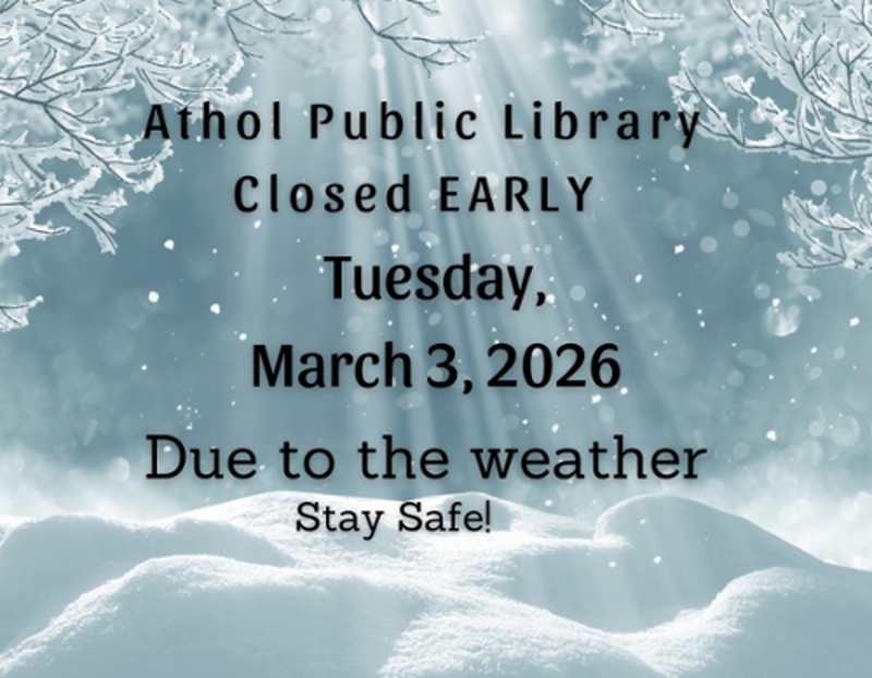The Athol Public Library is closing at 5:00 today, March 3, 2026 due to the weather.