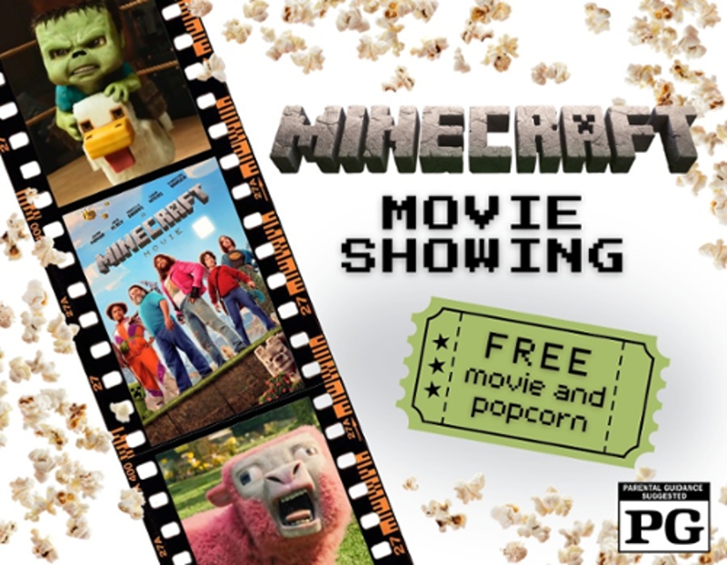 Come to the library to eat popcorn and watch the Minecraft Movie!