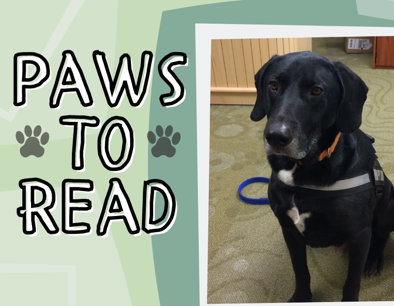 Our friend, Hunter the Therapy Dog, and his human, Amanda, will be visiting the library on Tuesday, October 19, for Paws to Read!