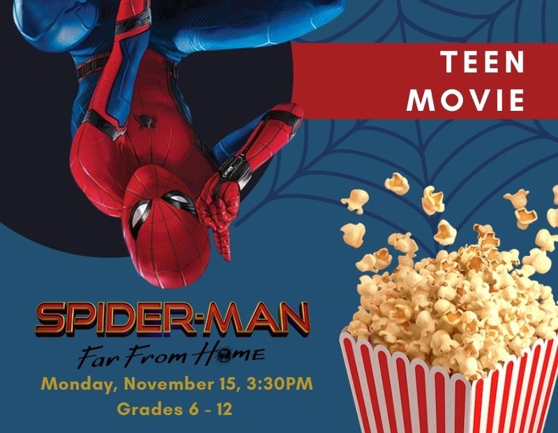 Join us on a half day of school to watch Spider-Man: Far From Home in the Teen Space. Bring some friends and catch up on this action packed flick before the third film comes out next month.