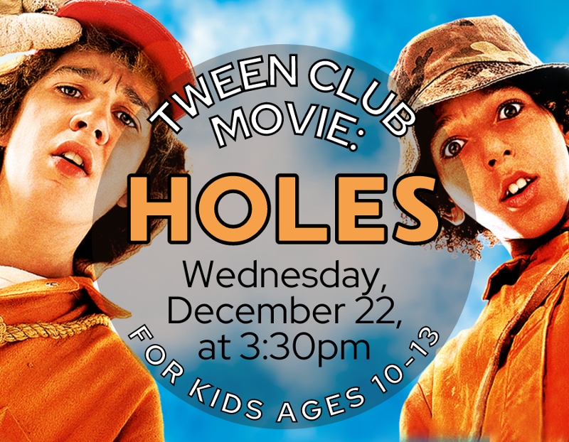 Tweens ages 10 - 13 are invited to participate in our exclusive Tween Club on the fourth Wednesday of each month. This club is a great way for tweens to get involved with the library, have some fun, and make new friends. This month, we'll be watching the 2003 film, Holes, based on the novel by Louis Sachar. No registration required--just meet us in the program room!