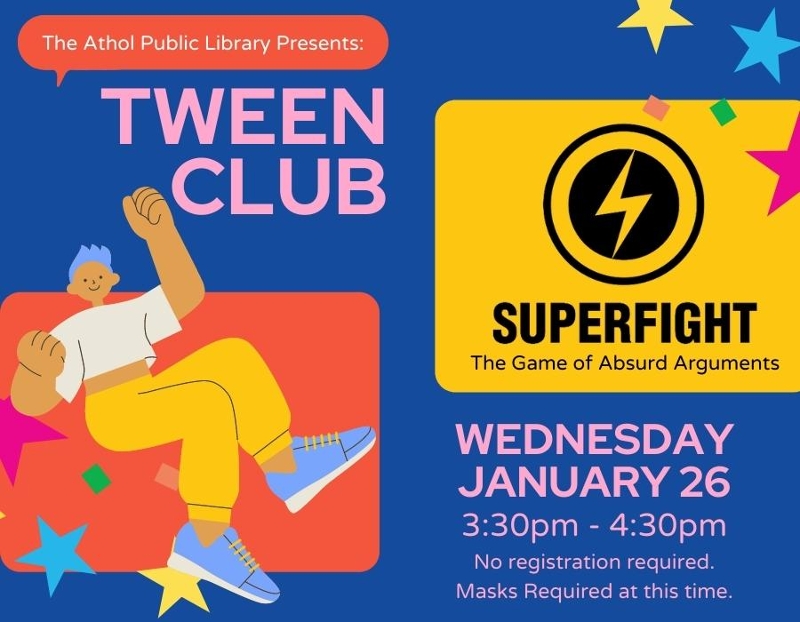 The Children’s Room and the Teen Space are teaming up to offer an exclusive club specifically for kids ages 10-13! This month we'll be playing Superfight: the game of absurd arguments. This hilarious party game challenges you to build your champion and debate with other players about who would win in the ultimate showdown.