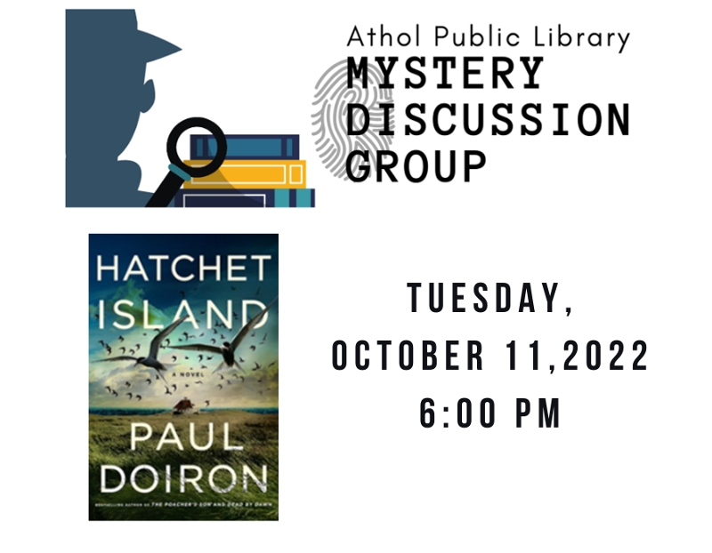 We will be discussing Hatchet Island by Paul Doiron on Tuesday, October 11 at 6:00 pm. Copies of the book are available for check out at the adult circulation desk or call 978-249-9515 to reserve a copy.