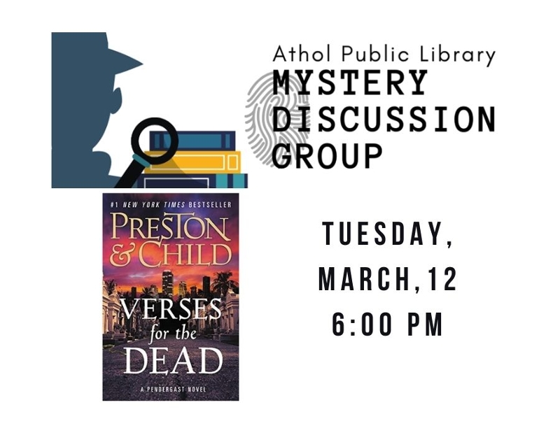 We will be discussing Verses for the Dead by Preston & Child on Tuesday, March 12 at 6:00 pm.