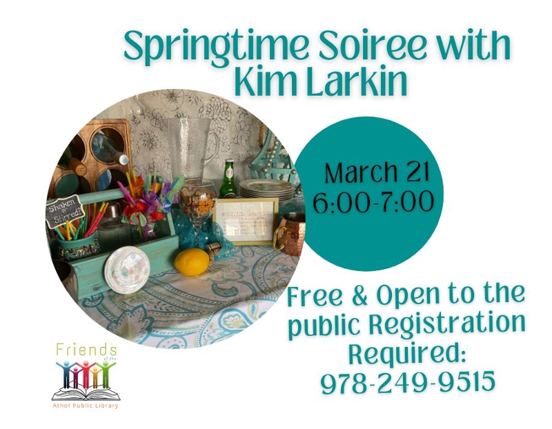Join the Athol Public Library at 568 Main Street, Athol, on Thursday, March 21, from 6:00 – 7:00 p.m., when we welcome Kim Larkin for her workshop welcoming springtime with easy entertaining ideas!