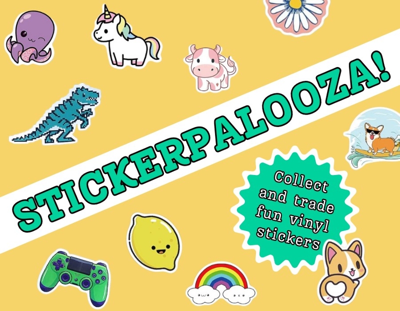 It's Stickerpalooza! We'll have hundreds of cool vinyl stickers to give away! When the program begins, each kid will be given an envelope of stickers. They will then have a few minutes to show and trade their stickers before a timer goes off and more stickers are distributed! We'll have 3-4 rounds of sticker distribution and trading. It will be a wild frenzy of friendship and sticker joy! Kids will practice social skills, negotiation, and boundary-setting at Stickerpalooza!